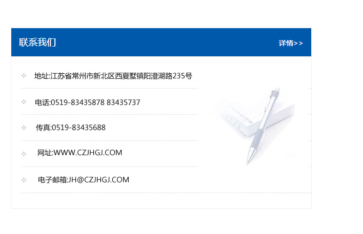 地址:常州市新北區友邦商務大廈1幢16、17層  電話:0519-85101652  傳真:0519-85112595  郵編:213022  網址:www.cz-jiayue_cn.ahrtzy.com  郵箱:xiajifengaa@163.com